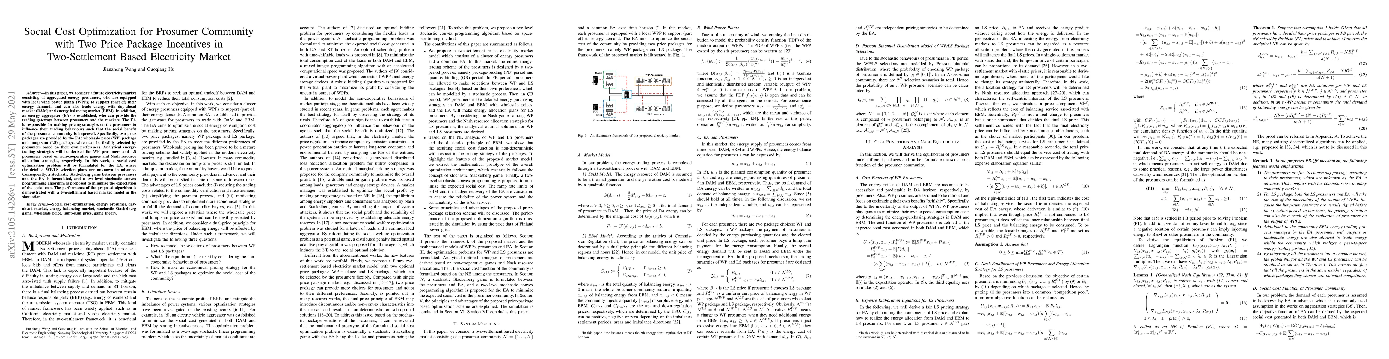 This paper proposes an optimization algorithm to minimize social cost in a prosumer community with two price packages in a two-settlement electricity market, aiming to improve social benefits.