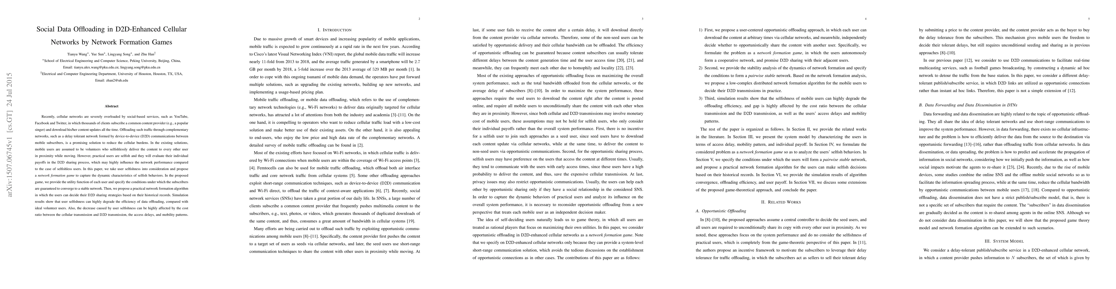 Recently, cellular networks are severely overloaded by social-based services, such as YouTube, Facebook and Twitter, in which thousands of clients subscribe a common content provider (e.g., a popular singer) and download his/her content updates all the time. Offloading such traffic through complementary networks, such as a delay tolerant network formed by device-to-device (D2D) communications between mobile subscribers, is a promising solution to reduce the cellular burdens. In the existing solutions, mobile users are assumed to be volunteers who selfishlessly deliver the content to every other user in proximity while moving. However, practical users are selfish and they will evaluate their individual payoffs in the D2D sharing process, which may highly influence the network performance compared to the case of selfishless users. In this paper, we take user selfishness into consideration and propose a network formation game to capture the dynamic characteristics of selfish behaviors. In the proposed game, we provide the utility function of each user and specify the conditions under which the subscribers are guaranteed to converge to a stable network. Then, we propose a practical network formation algorithm in which the users can decide their D2D sharing strategies based on their historical records. Simulation results show that user selfishness can highly degrade the efficiency of data offloading, compared with ideal volunteer users. Also, the decrease caused by user selfishness can be highly affected by the cost ratio between the cellular transmission and D2D transmission, the access delays, and mobility patterns.