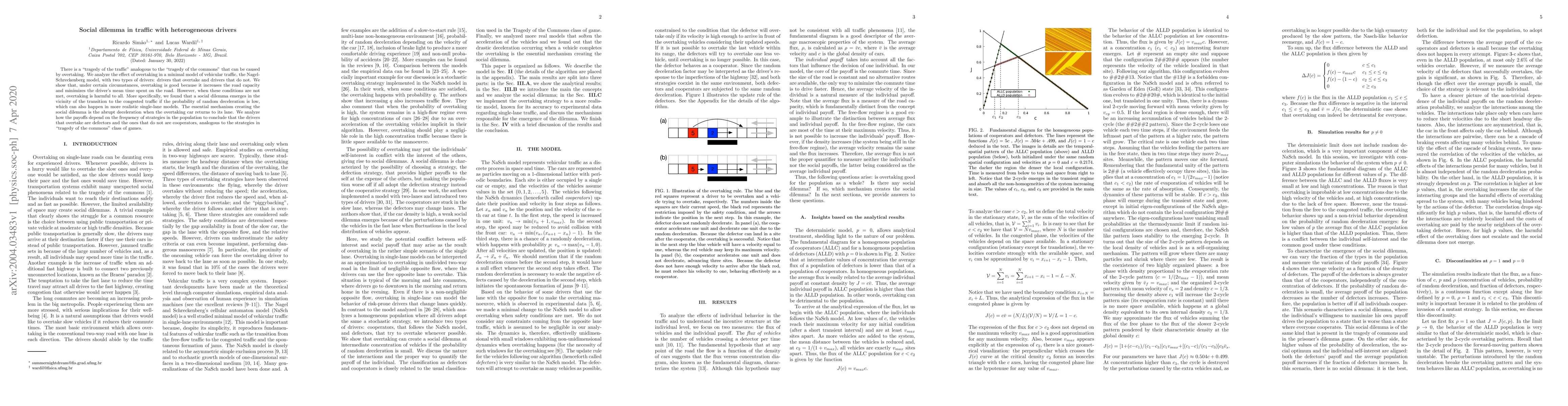 There is a tragedy of the traffic analogous to the tragedy of the commons that can be caused by overtaking. We analyze the effect of overtaking in a minimal model of vehicular traffic, the model proposed by Nagel and Schreckenberg, with two types of drivers: drivers that overtake and drivers that do not. We show that, under certain circumstances, overtaking is good because it increases the road capacity and minimizes the mean time spent by the driver on the road. However, when these conditions are not met, overtaking is harmful to all. More specifically, we found that a social dilemma emerges in the vicinity of the transition to the congested traffic if the probability of random deceleration is low, which can also happen in more realistic single-lane models. The essential mechanism creating the social dilemma is the abrupt deceleration when the overtaking car returns to its lane. We analyze how the payoffs depend on the frequency of strategies in the population to conclude that the drivers that overtake are defectors and the ones that do not are cooperators, analogous to the strategies in tragedy of the commons class of games.
