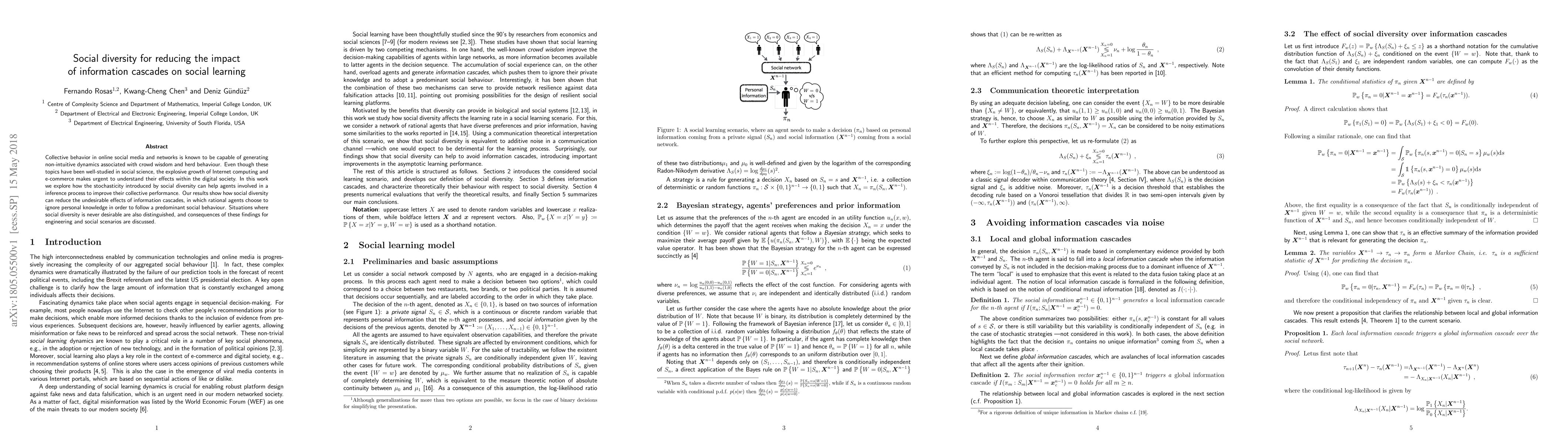 This paper investigates how social diversity can mitigate the negative effects of information cascades in online social networks, demonstrating that diverse agents can improve collective performance and reduce herd behavior. However, it also identifies contexts where social diversity may not be beneficial, discussing implications for both engineering and social dynamics.