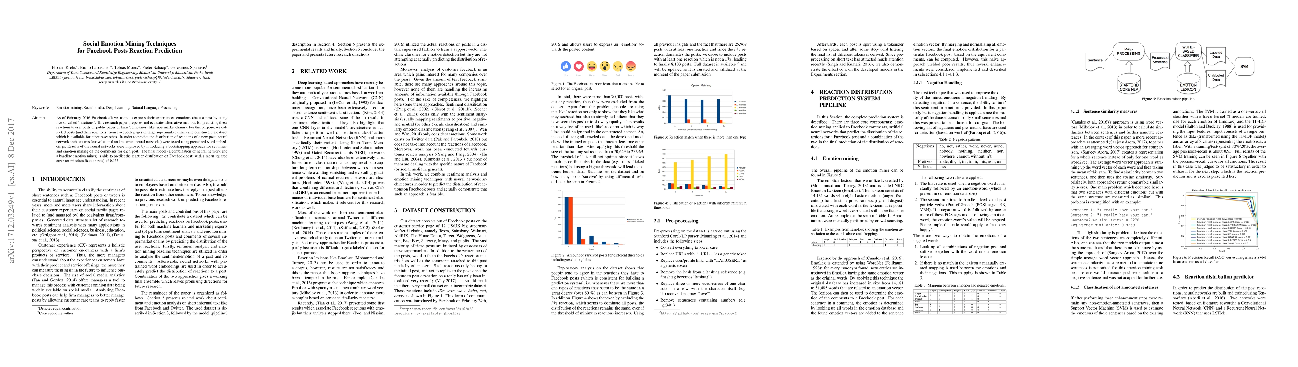 This paper explores techniques for predicting Facebook reactions to posts using social emotion mining, testing neural networks and a bootstrapping approach. The proposed model combines neural networks with a baseline emotion miner to achieve a mean squared error of 0.135 in predicting reaction distributions.