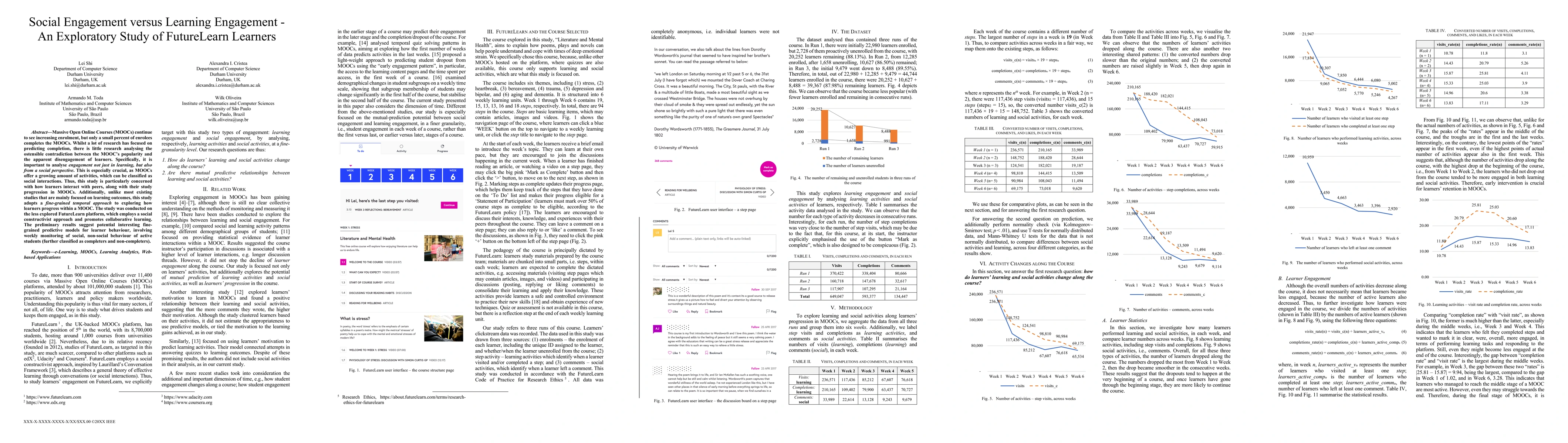 This study explores the relationship between social engagement and learning engagement in FutureLearn MOOCs, finding potential predictive models for learner behavior based on weekly monitoring of social and non-social activities.