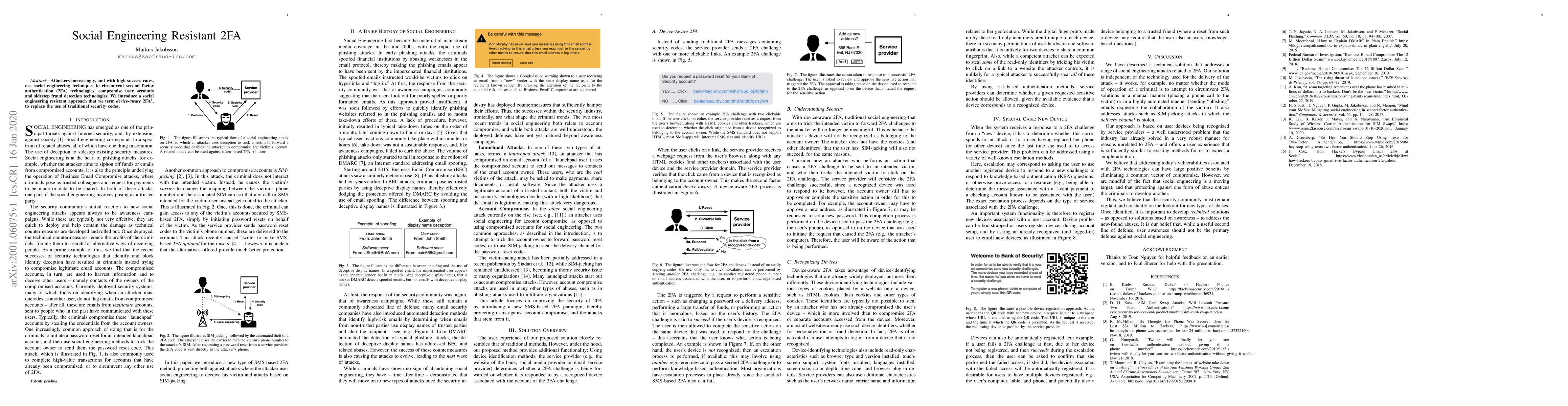 Summary: This paper proposes a novel device-aware 2FA method to counter social engineering attacks that compromise traditional 2FA, aiming to enhance account security by integrating device-specific awareness into the authentication process.