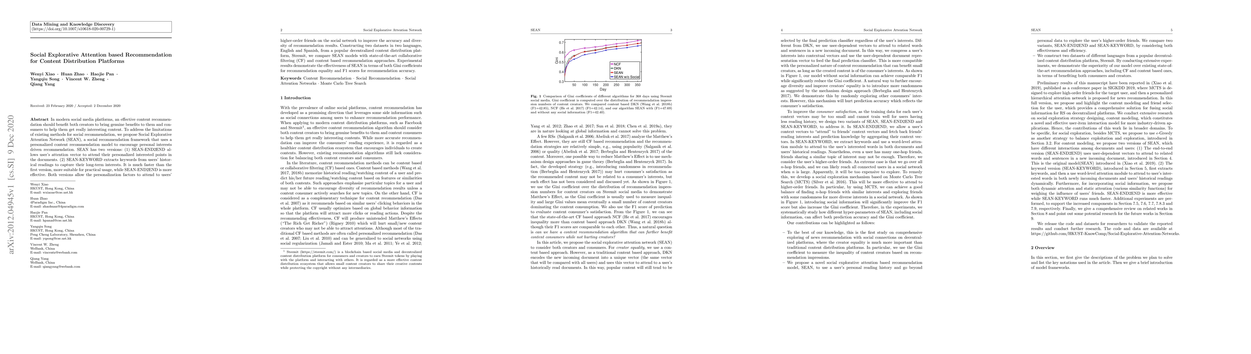 The paper introduces SEAN, a Social Explorative Attention Network for enhancing content recommendation on social media platforms by leveraging personalized attention mechanisms and social network factors. Experiments show SEAN outperforms state-of-the-art methods in recommendation accuracy and equality across two languages.