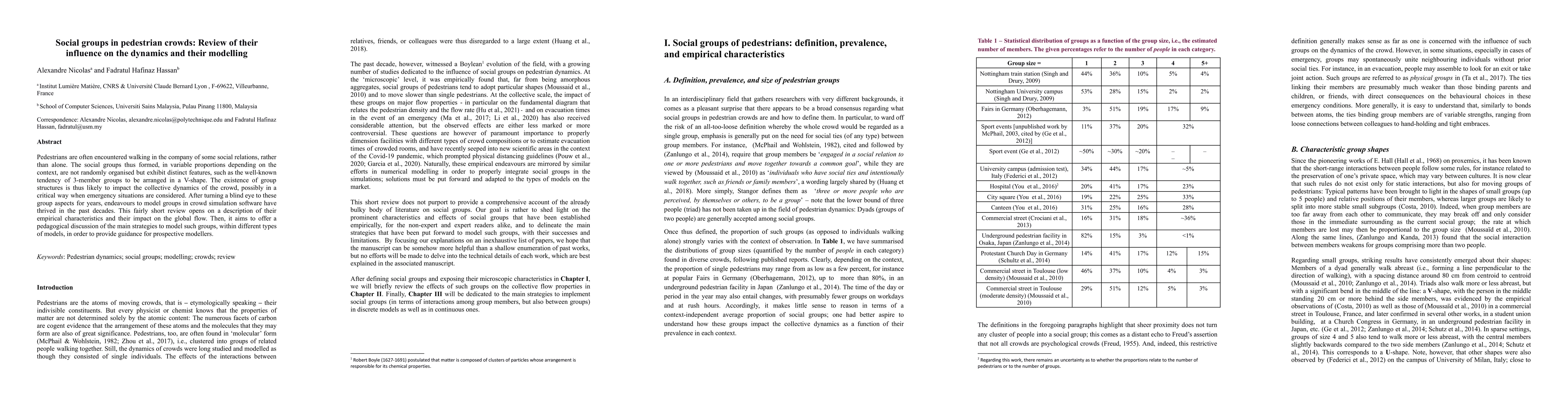 This paper reviews the influence of social groups on pedestrian crowd dynamics and explores modelling strategies for incorporating these groups into crowd simulation software. It highlights empirical characteristics of group formations and discusses various modelling approaches to better simulate the impact of social structures on crowd movement.