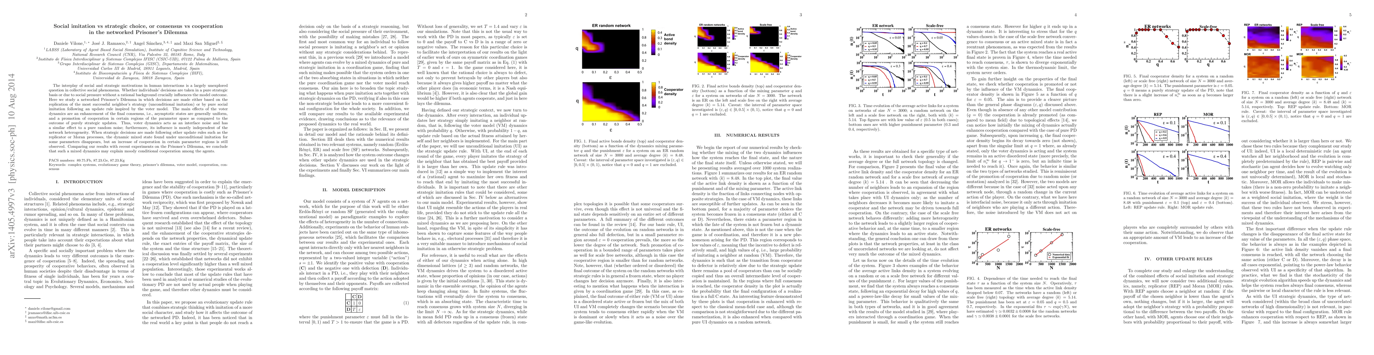 This paper investigates how social imitation and strategic choice influence consensus and cooperation in a networked Prisoner's Dilemma, finding that voter dynamics enhance consensus and promote cooperation, while other update rules like replicator or Moran processes still increase cooperation but eliminate dynamic mixed states.