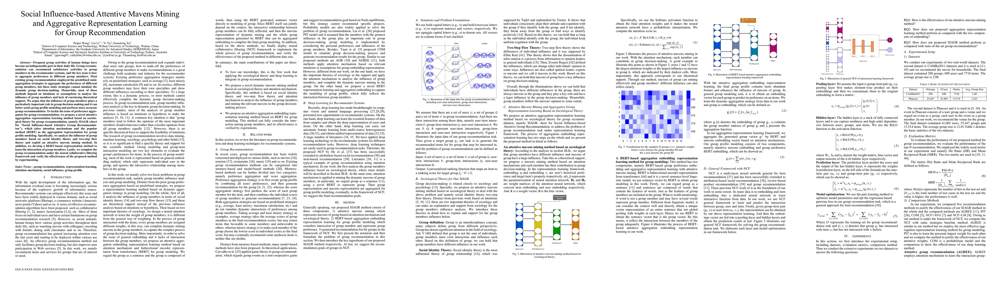 The paper proposes a novel method, SIAGR, for group recommendation that leverages social influence and attentive aggregation to better model group preferences. It utilizes sociological theories and BERT-based representation learning to dynamically aggregate members' preferences, aiming to improve recommendation accuracy.