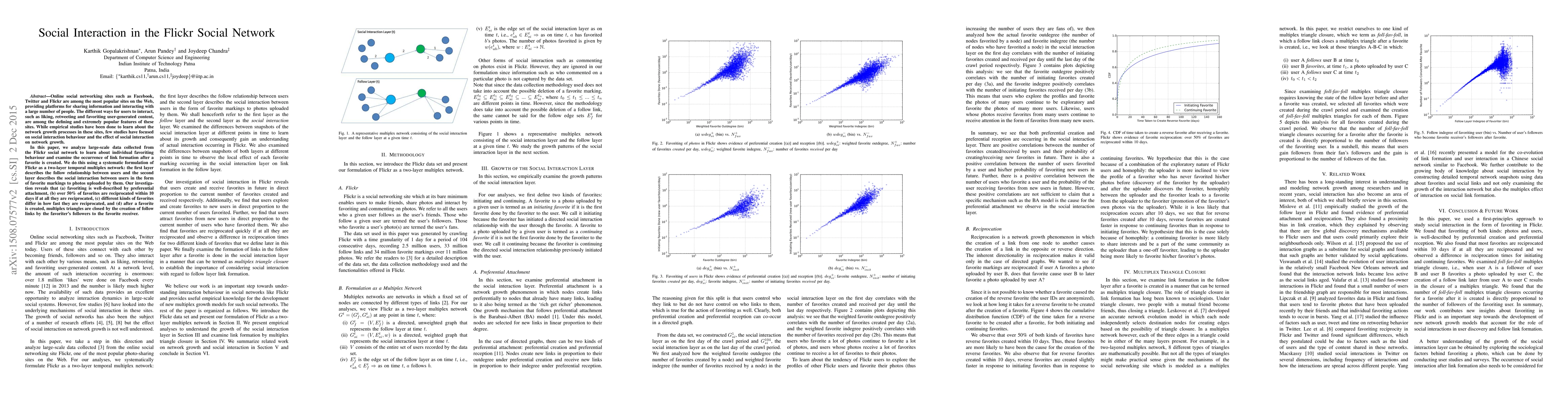 This paper analyzes Flickr's social interaction behavior, finding that favoriting follows preferential attachment and over 50% of favorites are reciprocated within 10 days. It also reveals that different types of favorites have varying reciprocation speeds and that follow links often form after a favorite is created.