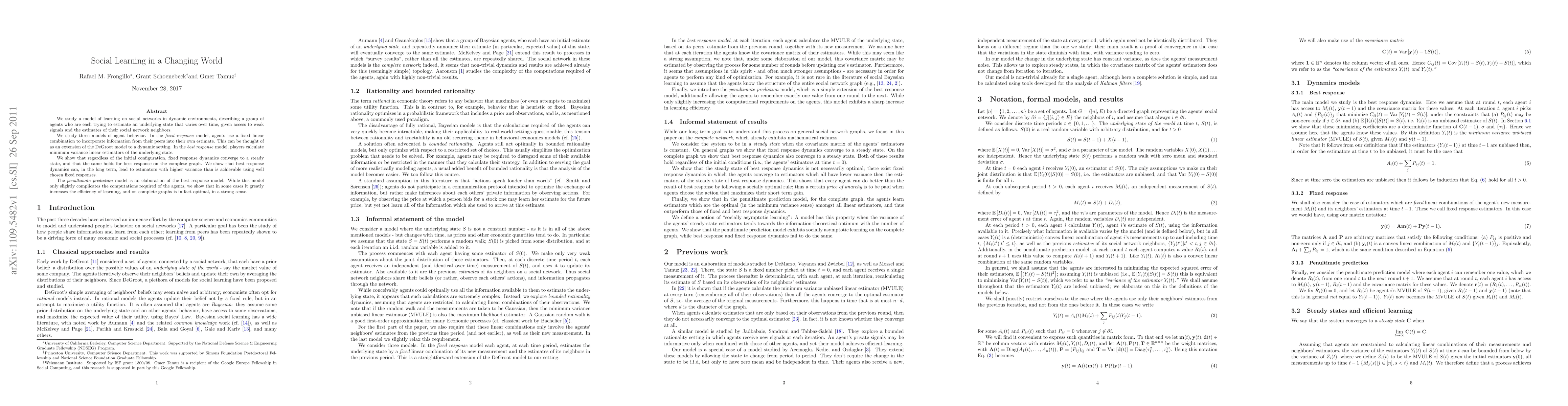 This paper studies how agents learn from social networks in changing environments, finding that certain models of behavior can lead to efficient learning but also increase variance, while others converge to steady states.