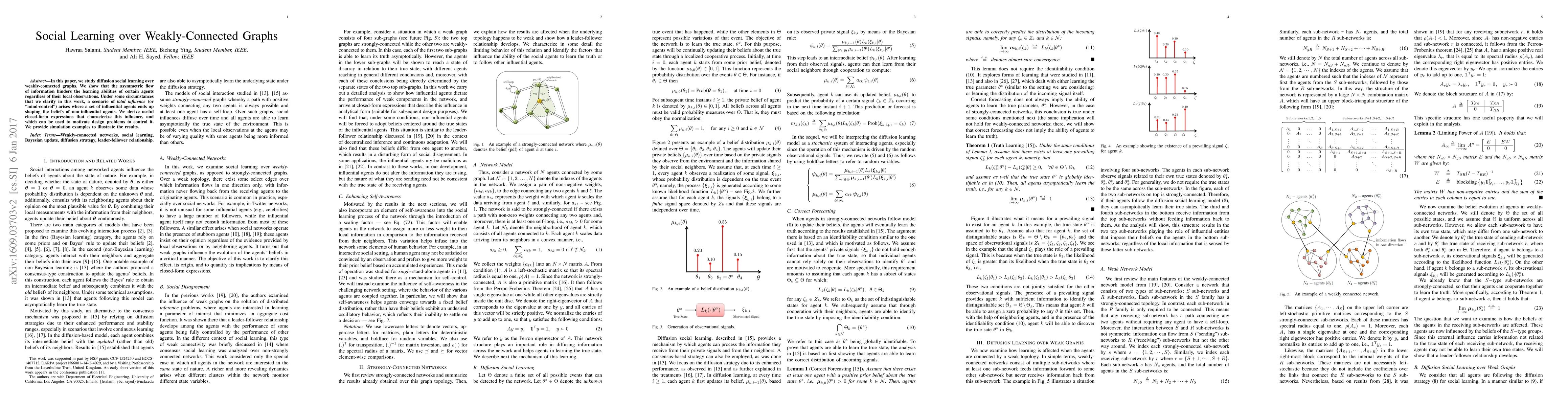 In this paper, we study diffusion social learning over weakly-connected graphs. We show that the asymmetric flow of information hinders the learning abilities of certain agents regardless of their local observations. Under some circumstances that we clarify in this work, a scenario of total influence (or "mind-control") arises where a set of influential agents ends up shaping the beliefs of non-influential agents. We derive useful closed-form expressions that characterize this influence, and which can be used to motivate design problems to control it. We provide simulation examples to illustrate the results.
