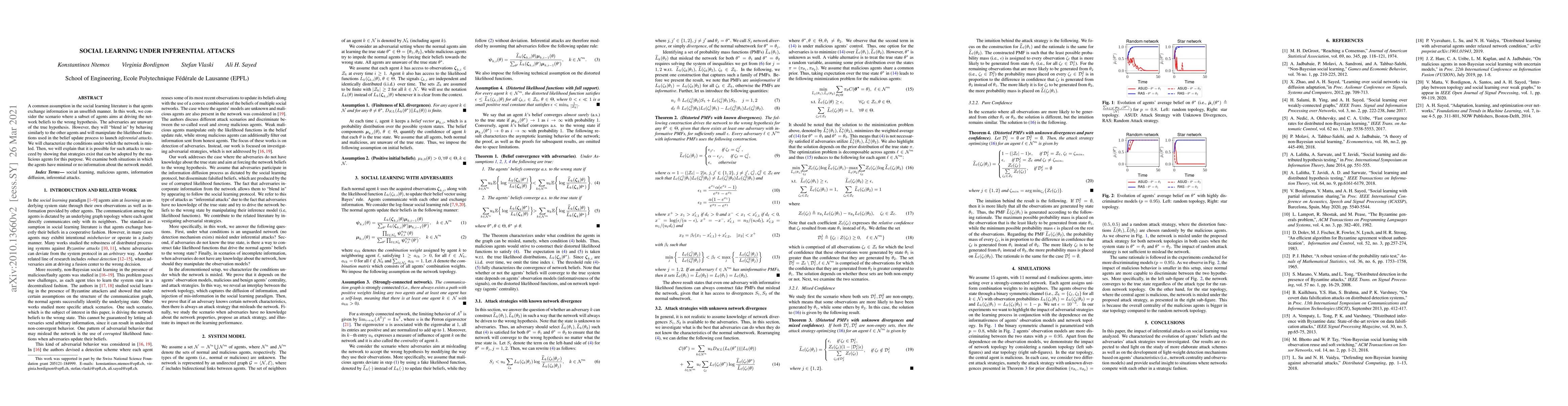 A common assumption in the social learning literature is that agents exchange information in an unselfish manner. In this work, we consider the scenario where a subset of agents aims at driving the network beliefs to the wrong hypothesis. The adversaries are unaware of the true hypothesis. However, they will "blend in" by behaving similarly to the other agents and will manipulate the likelihood functions used in the belief update process to launch inferential attacks. We will characterize the conditions under which the network is misled. Then, we will explain that it is possible for such attacks to succeed by showing that strategies exist that can be adopted by the malicious agents for this purpose. We examine both situations in which the agents have minimal or no information about the network model.