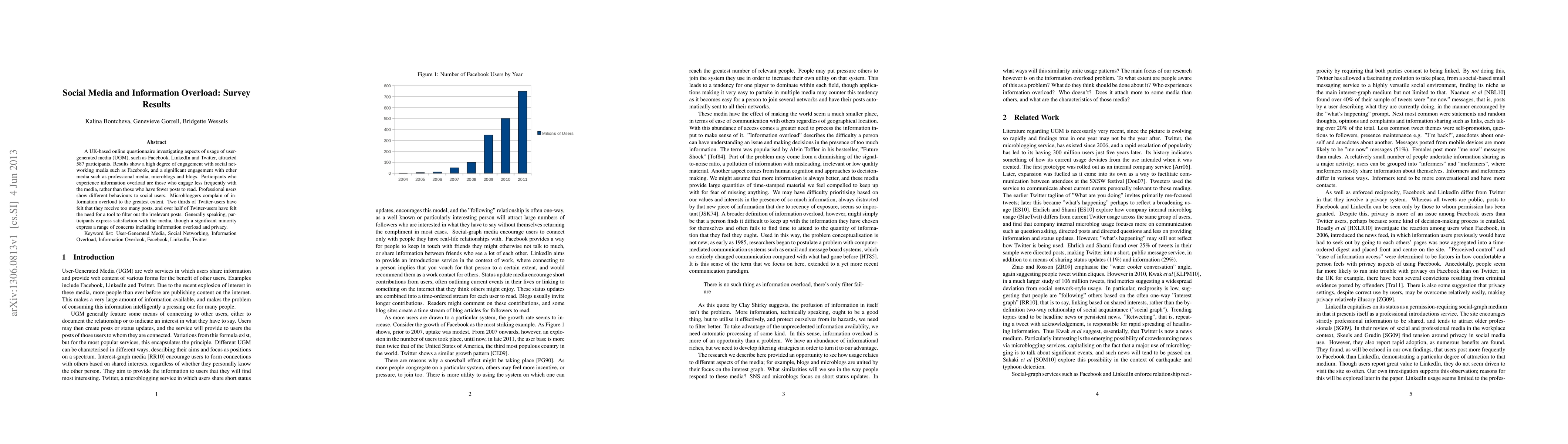 This UK-based survey of 587 participants reveals high engagement with social media like Facebook, professional media, and microblogs, with microbloggers experiencing the most information overload. Despite satisfaction with the media, concerns about information overload and privacy persist among a significant minority.