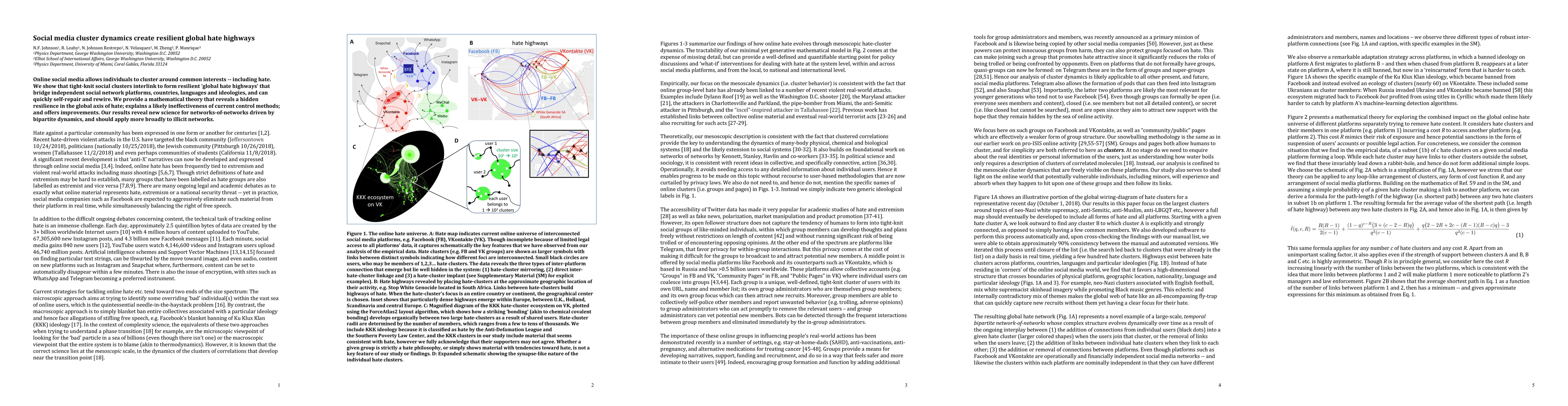 Social media clusters form resilient global networks of hate that can quickly repair and rewire, making current control methods less effective.