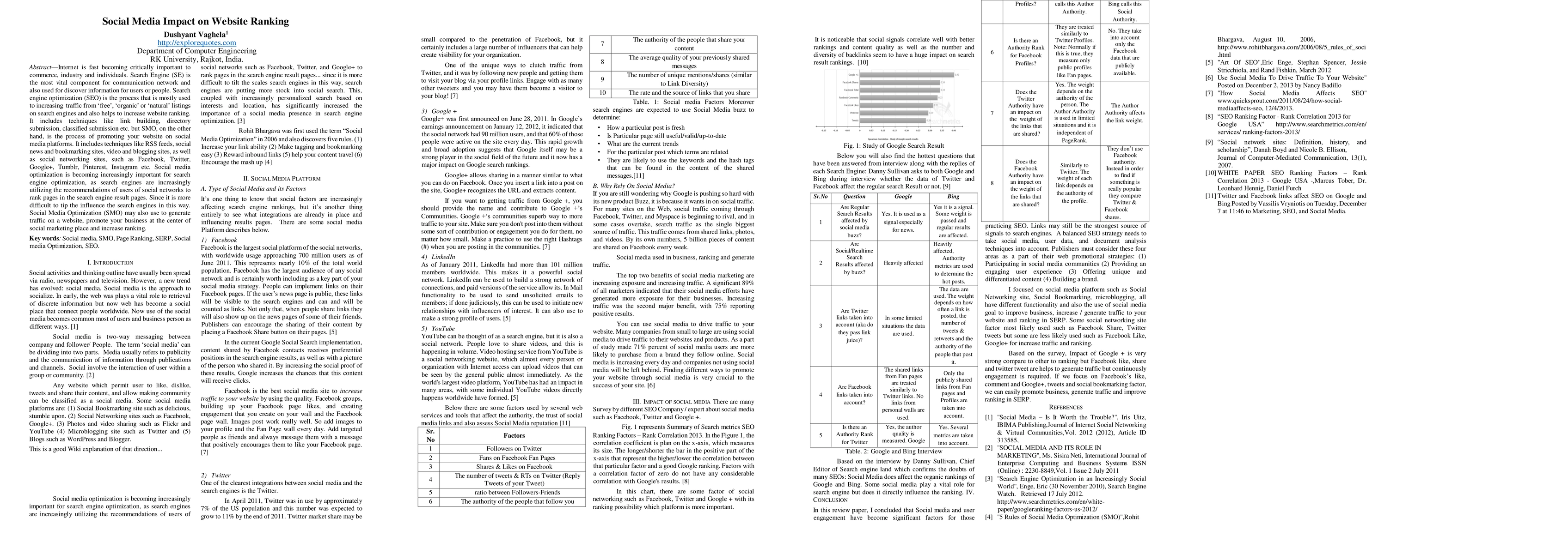 This paper explores the growing significance of Social Media Optimization (SMO) in enhancing website ranking through search engine optimization (SEO). It highlights how SMO, involving techniques like social networking and content sharing, influences search engine rankings by leveraging user recommendations from social networks.