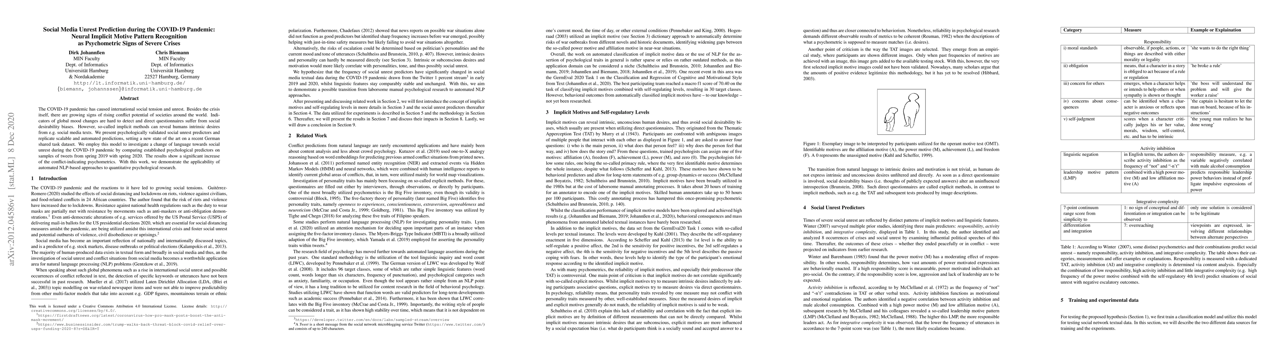 The COVID-19 pandemic has caused international social tension and unrest. Besides the crisis itself, there are growing signs of rising conflict potential of societies around the world. Indicators of global mood changes are hard to detect and direct questionnaires suffer from social desirability biases. However, so-called implicit methods can reveal humans intrinsic desires from e.g. social media texts. We present psychologically validated social unrest predictors and replicate scalable and automated predictions, setting a new state of the art on a recent German shared task dataset. We employ this model to investigate a change of language towards social unrest during the COVID-19 pandemic by comparing established psychological predictors on samples of tweets from spring 2019 with spring 2020. The results show a significant increase of the conflict indicating psychometrics. With this work, we demonstrate the applicability of automated NLP-based approaches to quantitative psychological research.