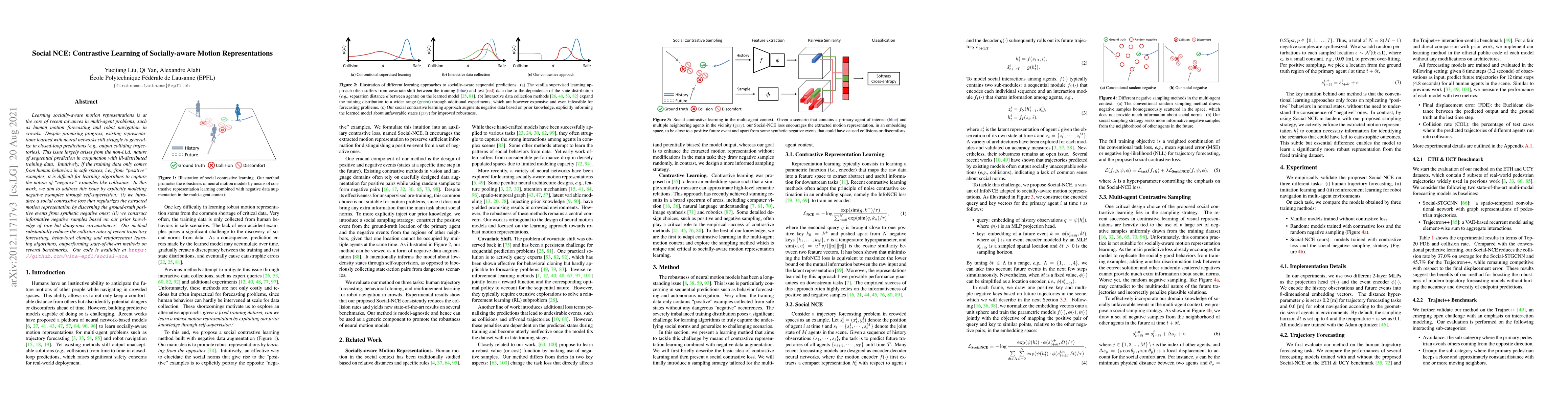 This paper proposes a socially-aware motion representation learning method using contrastive learning to model negative examples, significantly reducing collision rates in multi-agent scenarios. The approach employs a self-supervised social contrastive loss and synthetic negative samples to improve generalization in trajectory forecasting and navigation.