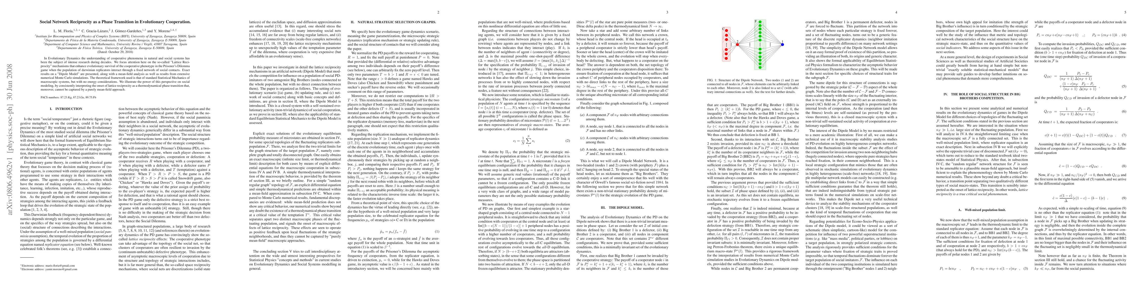 Researchers explore how social networks can enhance evolutionary cooperation through reciprocity, finding that this occurs at a phase transition point in the Prisoner's Dilemma game.