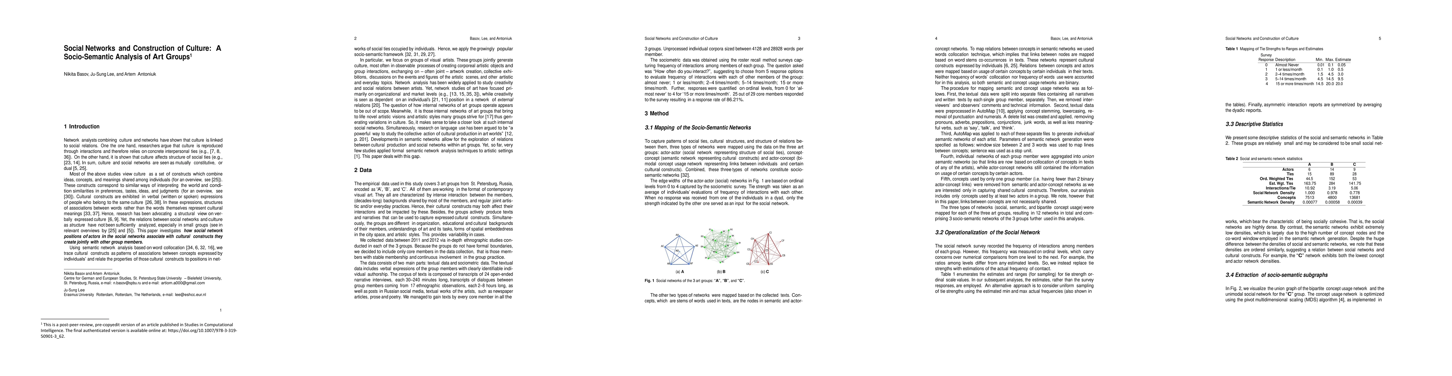 This study investigates how social ties within small art groups influence the construction of cultural constructs, revealing that socially popular individuals tend to hinder concept sharing, while socially bridging members facilitate it. The research also finds that intense interactions between leaders and followers focus and integrate cultural constructs more effectively.
