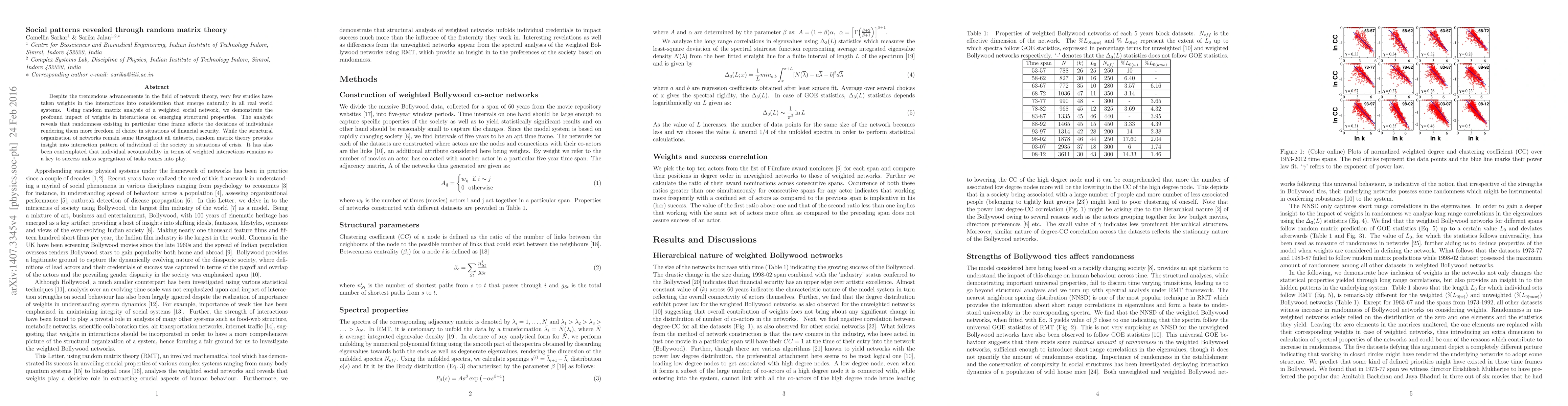 Despite the tremendous advancements in the field of network theory, very few studies have taken weights in the interactions into consideration that emerge naturally in all real world systems. Using random matrix analysis of a weighted social network, we demonstrate the profound impact of weights in interactions on emerging structural properties. The analysis reveals that randomness existing in particular time frame affects the decisions of individuals rendering them more freedom of choice in situations of financial security. While the structural organization of networks remain same throughout all datasets, random matrix theory provides insight into interaction pattern of individual of the society in situations of crisis. It has also been contemplated that individual accountability in terms of weighted interactions remains as a key to success unless segregation of tasks comes into play.