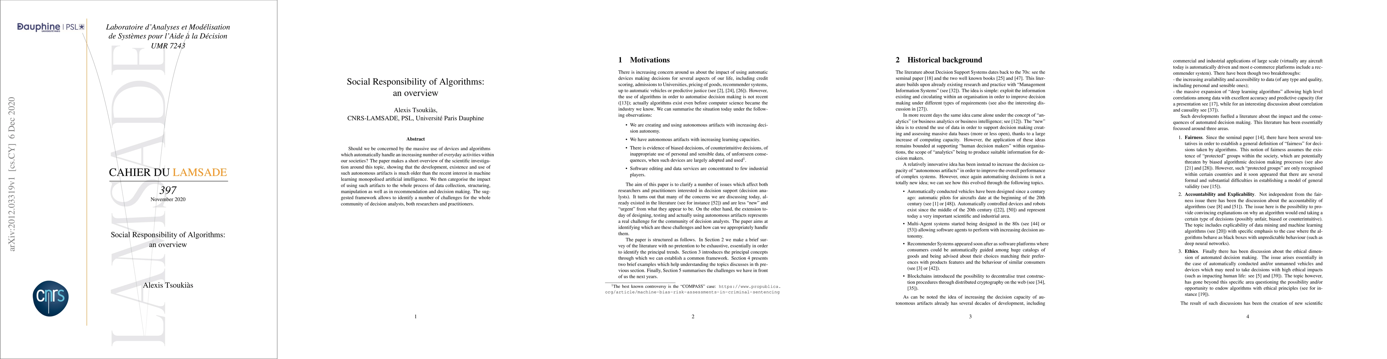 This paper reviews the long history of autonomous devices and algorithms in society, identifying challenges in data handling and decision-making processes for researchers and practitioners alike.