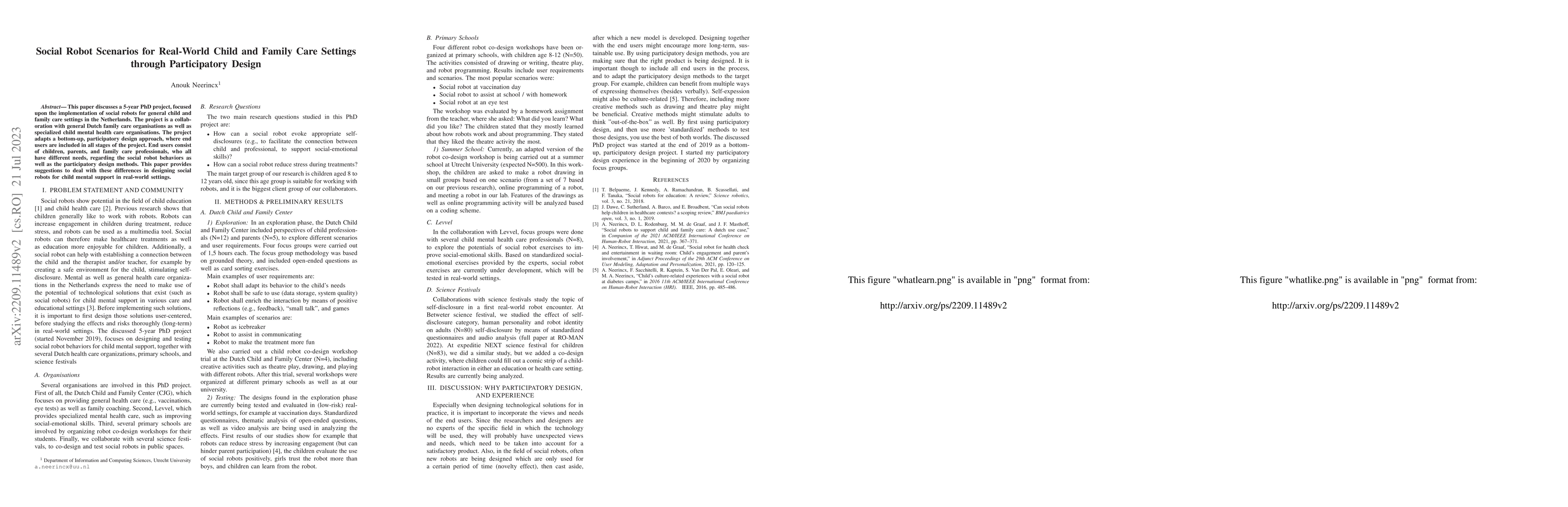The research is important because it focuses on designing social robots for child mental support in real-world settings, and its potential impact is to improve healthcare treatments and education.