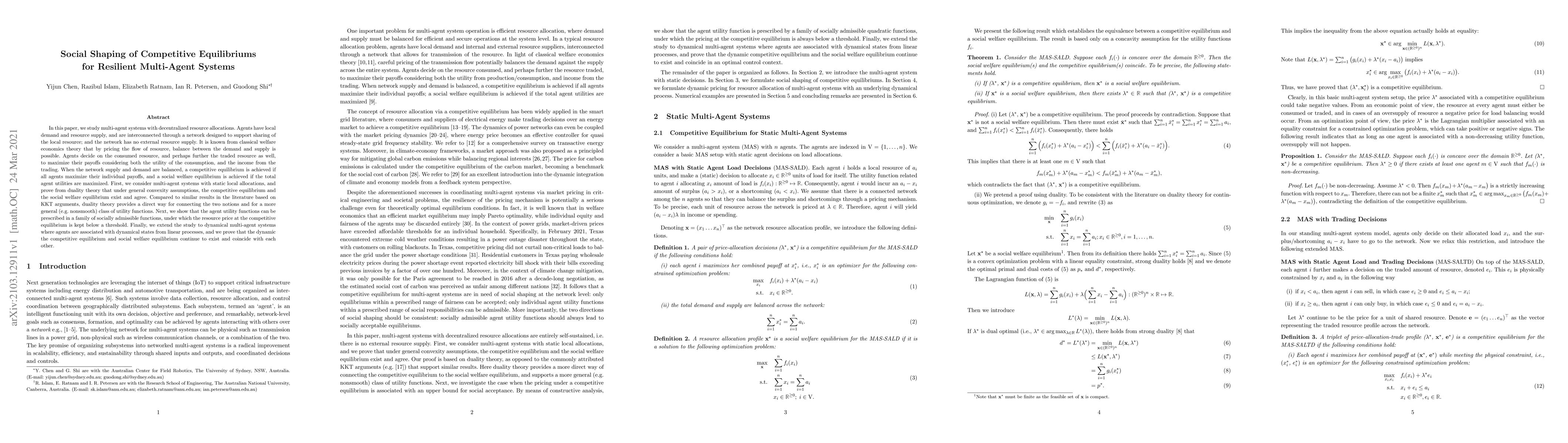 This paper explores decentralized resource allocation in multi-agent systems, proving that competitive equilibrium and social welfare equilibrium exist and coincide under general convexity assumptions using duality theory. It also shows that agent utility functions can be structured to keep the resource price below a threshold, and extends the findings to dynamic multi-agent systems.