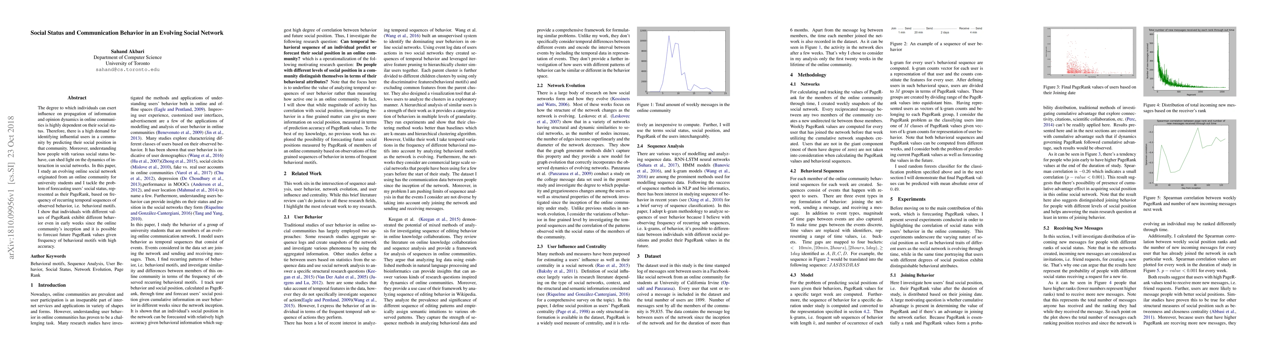 This paper investigates how social status influences communication behavior in an evolving online social network, focusing on university students. It demonstrates that forecasting users' PageRank, a measure of social status, can be achieved with high accuracy by analyzing the frequency of behavioral motifs, indicating distinct interaction patterns among users with different social statuses.