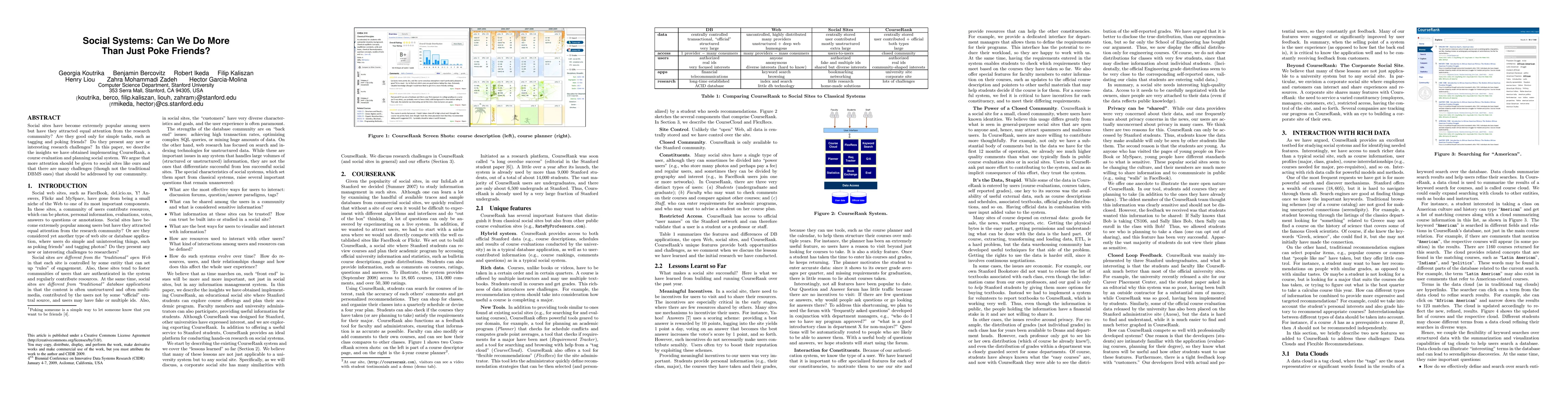 Social sites have become extremely popular among users but have they attracted equal attention from the research community? Are they good only for simple tasks, such as tagging and poking friends? Do they present any new or interesting research challenges? In this paper, we describe the insights we have obtained implementing CourseRank, a course evaluation and planning social system. We argue that more attention should be given to social sites like ours and that there are many challenges (though not the traditional DBMS ones) that should be addressed by our community.