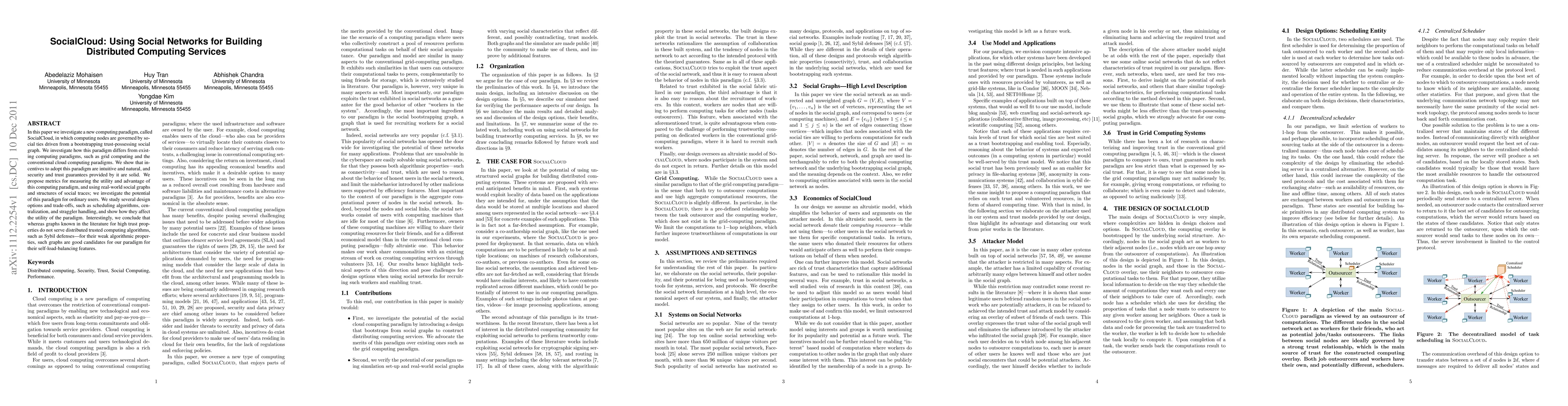 Researchers propose a new computing paradigm called SocialCloud that leverages social ties to build distributed computing services, offering intuitive incentives and solid security guarantees. They explore its potential for ordinary users and identify suitable graphs with self-load-balancing features.