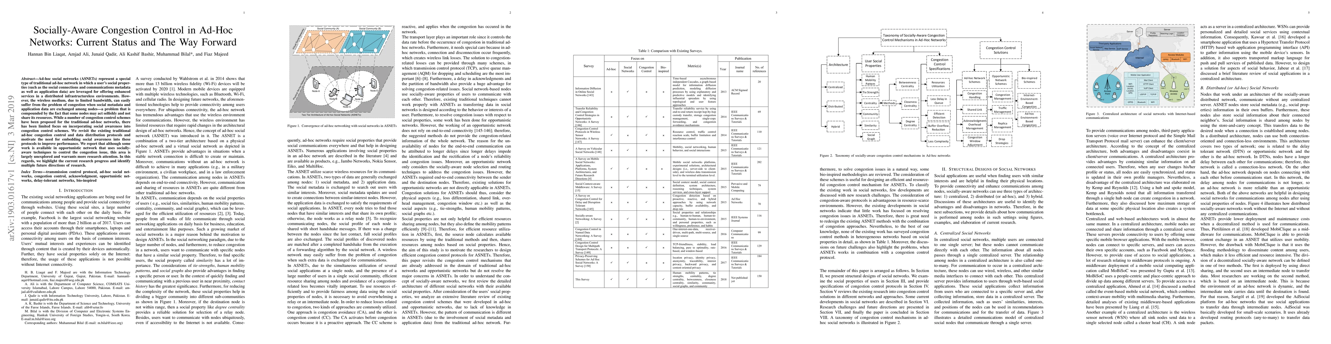Ad-hoc social networks (ASNETs) represent a special type of traditional ad-hoc network in which a user's social properties (such as the social connections and communications metadata as well as application data) are leveraged for offering enhanced services in a distributed infrastructureless environments. However, the wireless medium, due to limited bandwidth, can easily suffer from the problem of congestion when social metadata and application data are exchanged among nodes---a problem that is compounded by the fact that some nodes may act selfishly and not share its resources. While a number of congestion control schemes have been proposed for the traditional ad-hoc networks, there has been limited focus on incorporating social awareness into congestion control schemes. We revisit the existing traditional ad-hoc congestion control and data distribution protocols and motivate the need for embedding social awareness into these protocols to improve performance. We report that although some work is available in opportunistic network that uses socially-aware techniques to control the congestion issue, this area is largely unexplored and warrants more research attention. In this regards, we highlight the current research progress and identify multiple future directions of research.