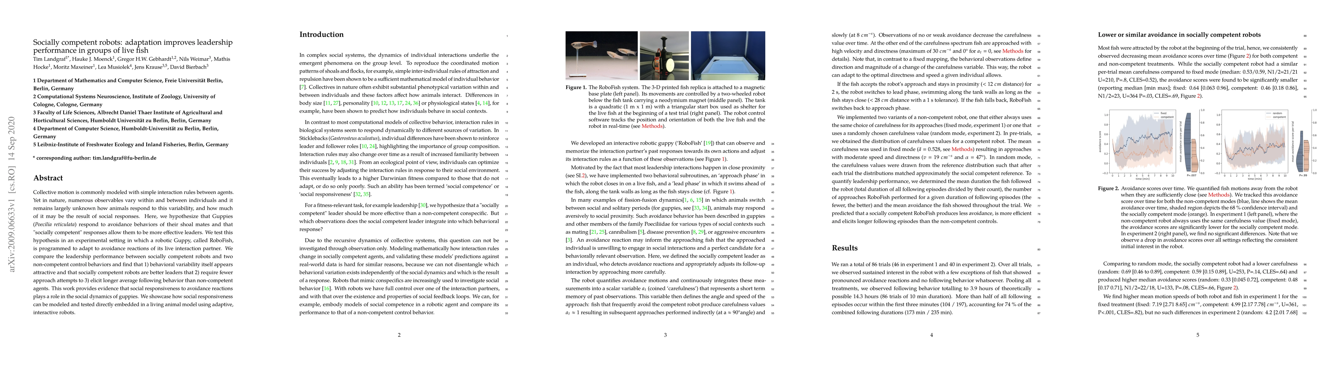 Researchers used a robotic Guppy to study how live fish respond to their peers' avoidance behaviors in groups, finding that adaptable robots were better leaders than non-adaptive ones.