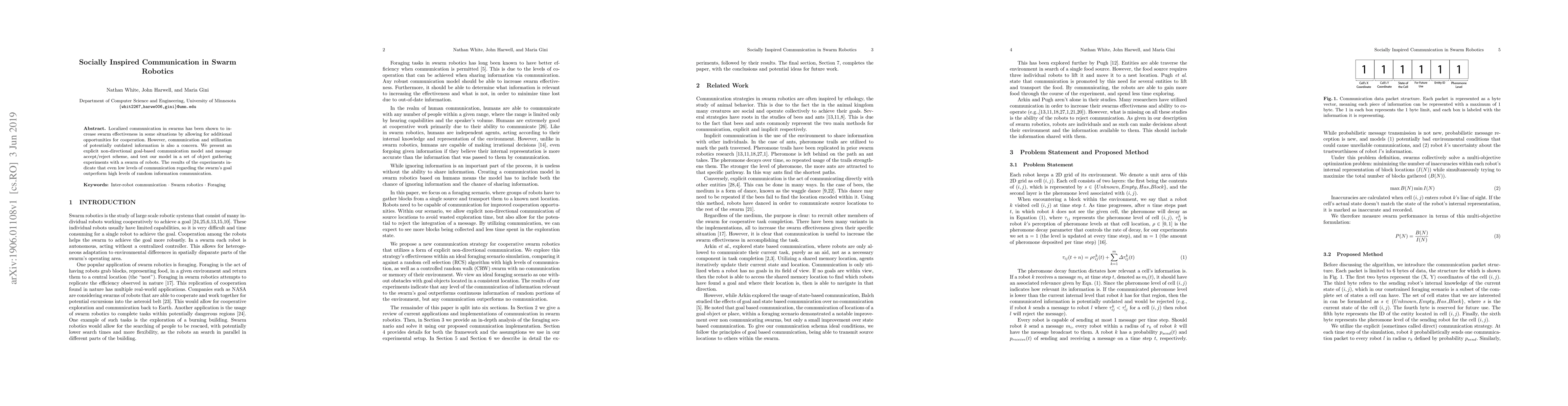 Localized communication in swarms has been shown to increase swarm effectiveness in some situations by allowing for additional opportunities for cooperation. However, communication and utilization of potentially outdated information is also a concern. We present an explicit non-directional goal-based communication model and message accept/reject scheme, and test our model in a set of object gathering experiments with a swarm of robots. The results of the experiments indicate that even low levels of communication regarding the swarm's goal outperform high levels of random information communication.