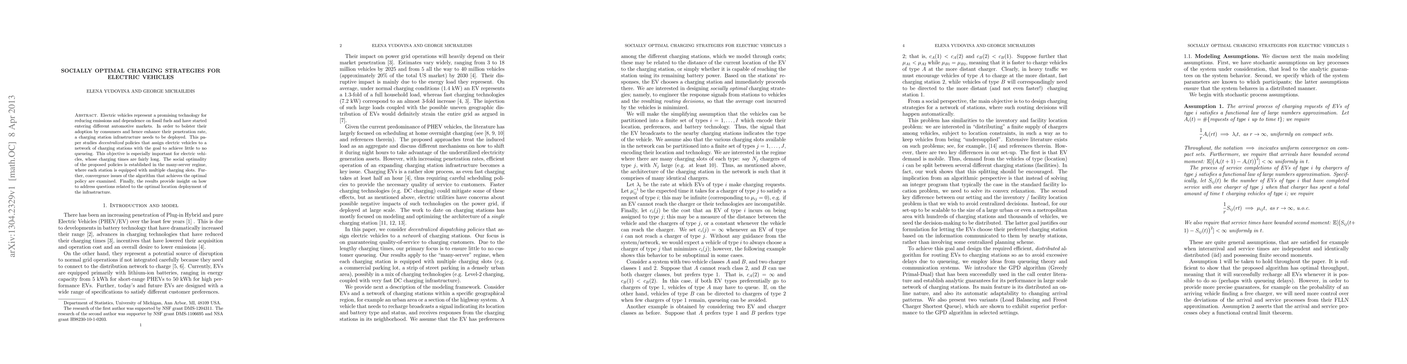 This paper proposes decentralized charging strategies for electric vehicles to minimize queueing at charging stations, crucial due to long charging times. It establishes the social optimality of these policies in scenarios with multiple charging slots per station and examines the convergence of the optimal algorithm, providing insights for infrastructure deployment.
