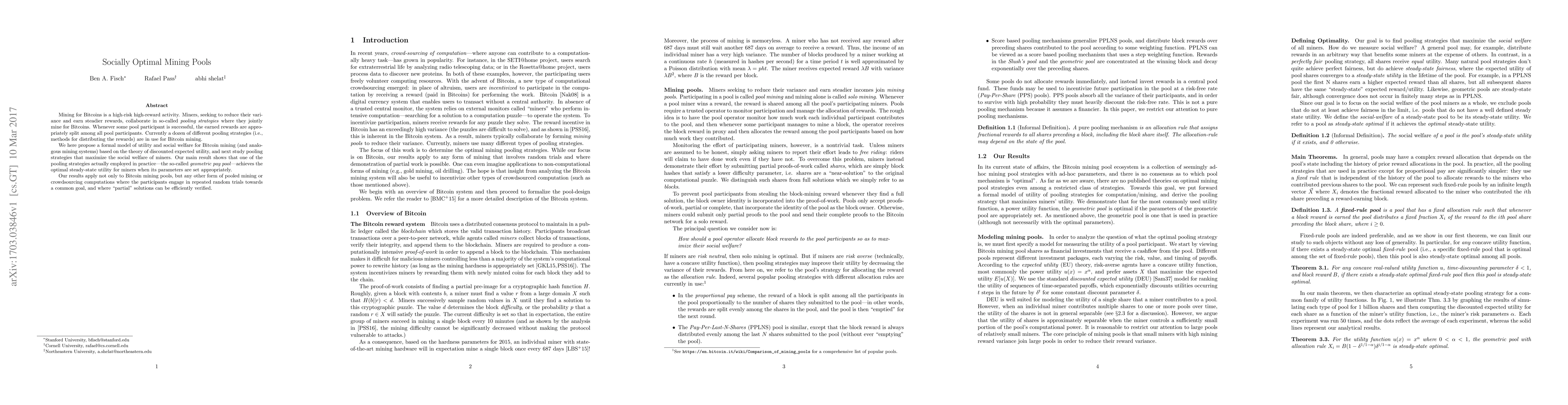 Researchers propose a model for utility and social welfare in Bitcoin mining pools, finding that a common strategy achieves optimal steady-state utility when its parameters are set correctly. This framework applies to other pooled mining or crowdsourcing computations with repeated random trials.