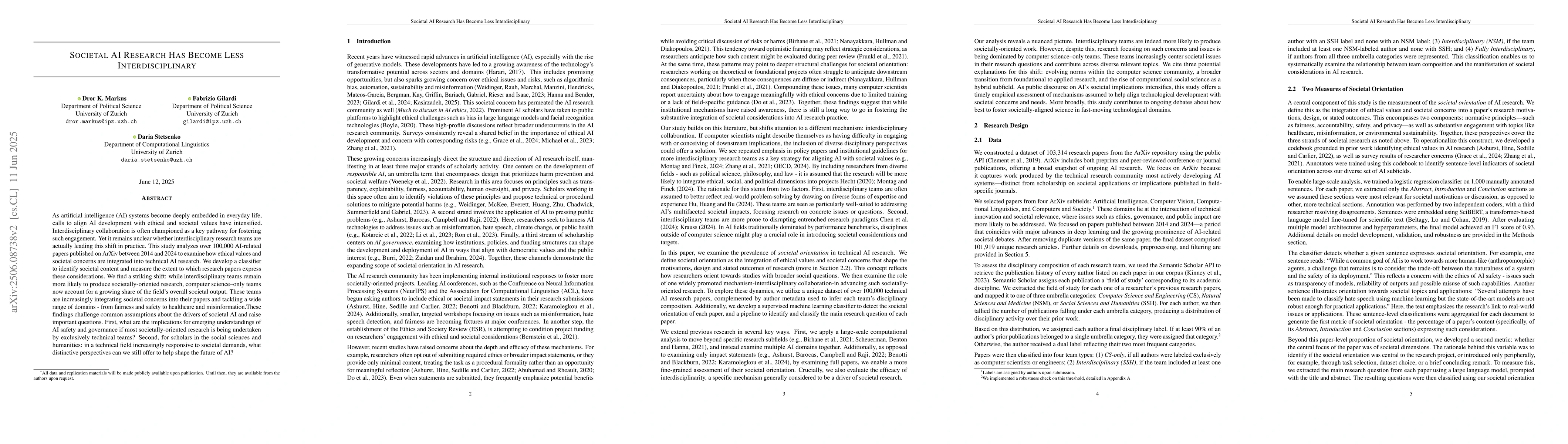 A study of over 100,000 AI papers found that more technical teams than interdisciplinary ones are now producing societally-oriented research, challenging common assumptions about the drivers of societal AI.