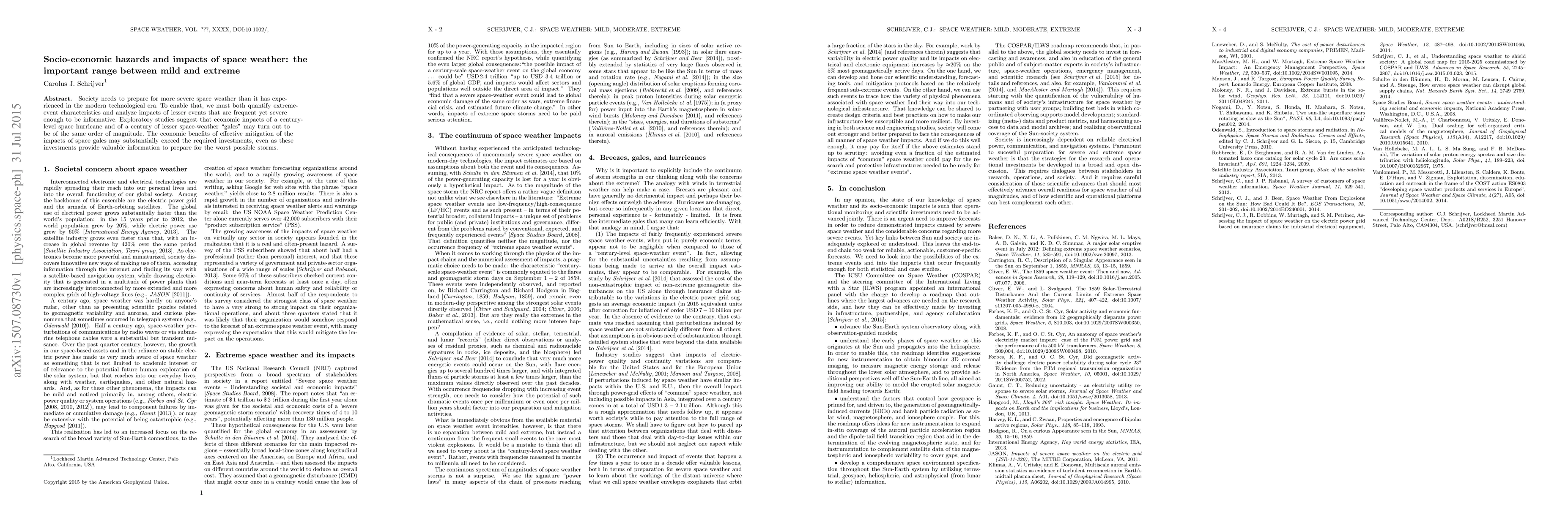 This paper explores the socio-economic impacts of space weather, emphasizing the need to prepare for both extreme events and frequent, severe but less catastrophic occurrences. It suggests that mitigating the effects of lesser space weather events can yield significant economic benefits, providing valuable preparation for more severe future storms.