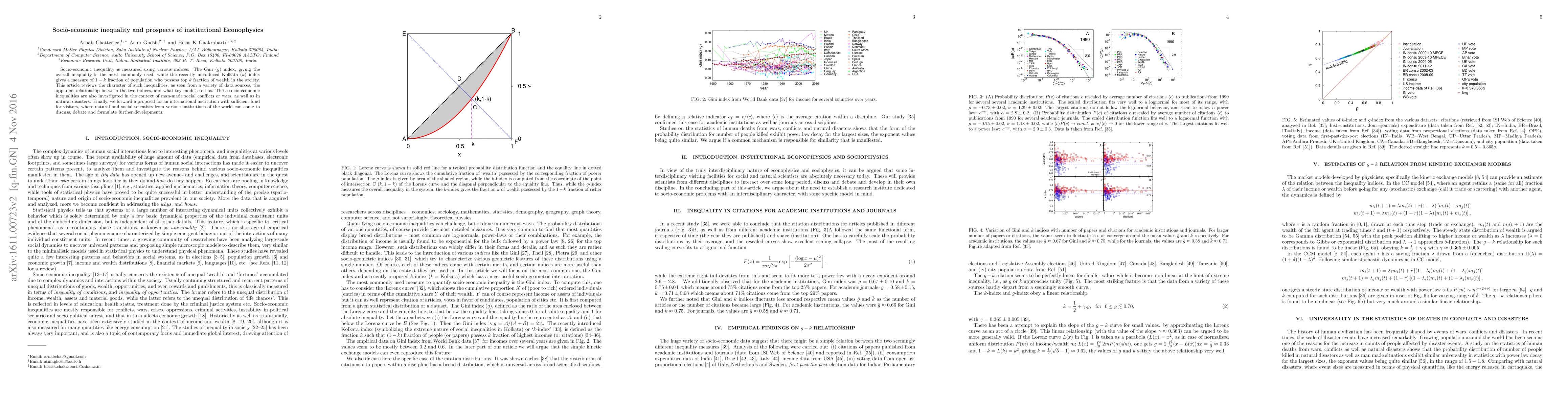 This paper reviews socio-economic inequality using the Gini and Kolkata indices, explores their relationship, and examines their implications in social conflicts and natural disasters. It proposes an international institution for interdisciplinary discussions on these issues.