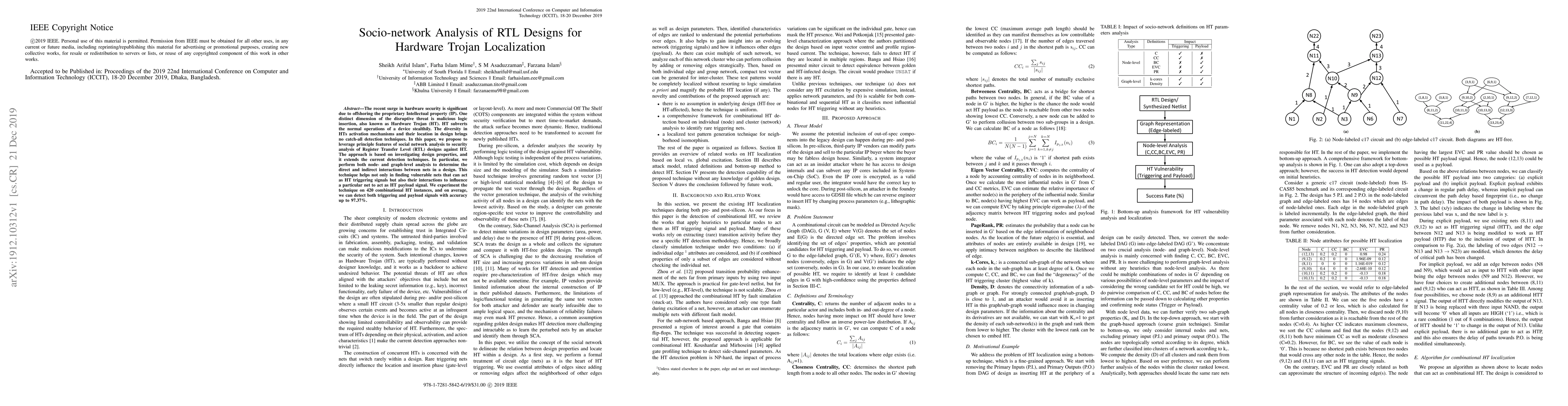 A new method uses social network analysis to detect hardware trojans in RTL designs, achieving accuracy of up to 97.37% in detecting both triggering and payload signals.
