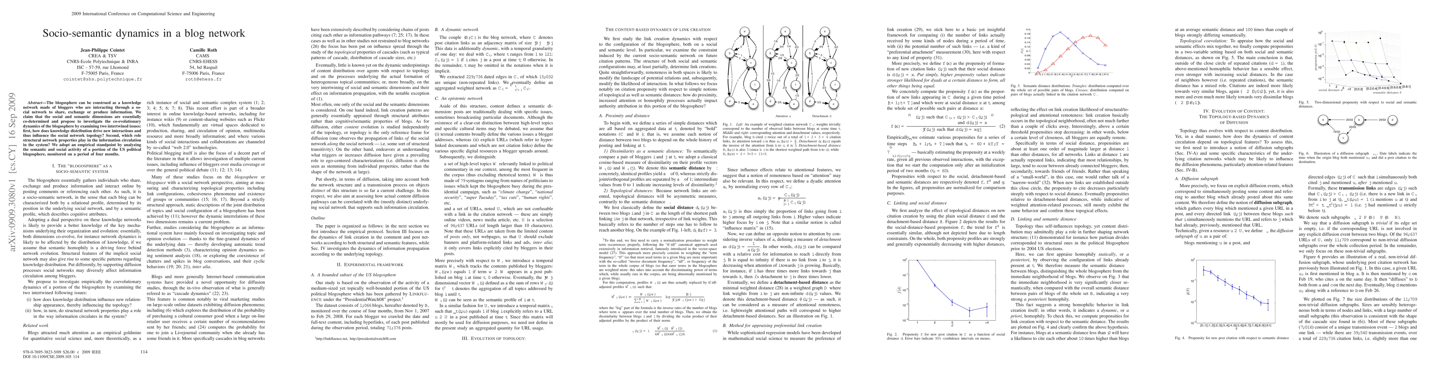 This paper explores the co-evolutionary dynamics of the blogosphere, focusing on how knowledge distribution influences social network topology and the role of network properties in information circulation. It analyzes the semantic and social activity of a segment of the US political blogosphere over four months.