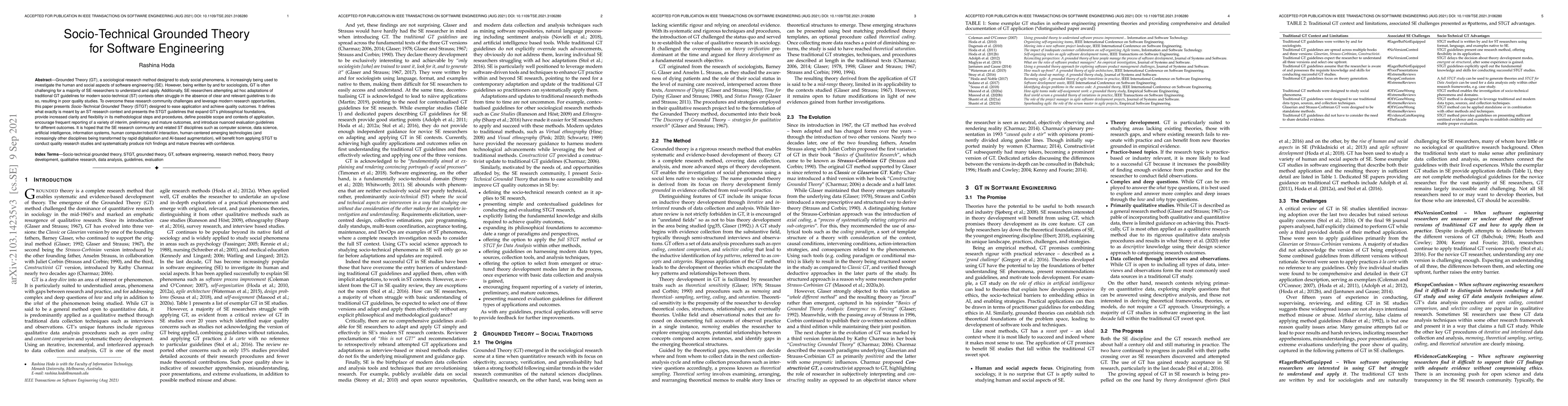 This paper introduces Socio-Technical Grounded Theory (STGT) to simplify the application of Grounded Theory in software engineering, addressing the challenges faced by SE researchers in adapting traditional GT for modern socio-technical contexts. STGT aims to enhance clarity, flexibility, and quality in research studies by providing expanded guidelines and evaluation criteria.