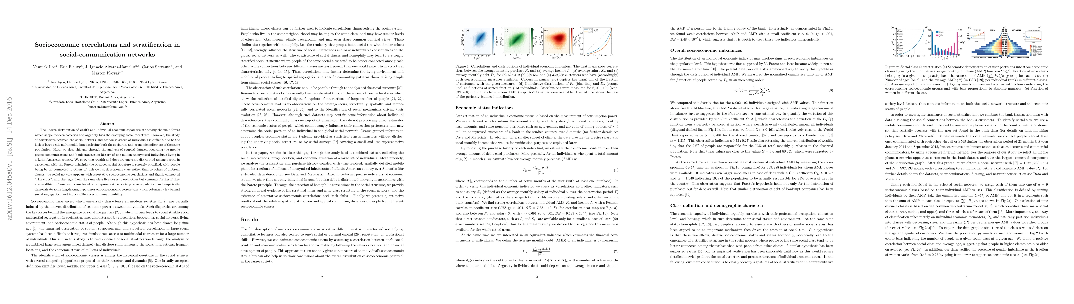This study analyzes large-scale mobile phone and bank transaction data from one million individuals in a Latin American country, revealing strong socioeconomic stratification in social networks. Wealth and debt are unevenly distributed, with people predominantly connecting with others of similar socioeconomic status, forming tightly connected "rich clubs."