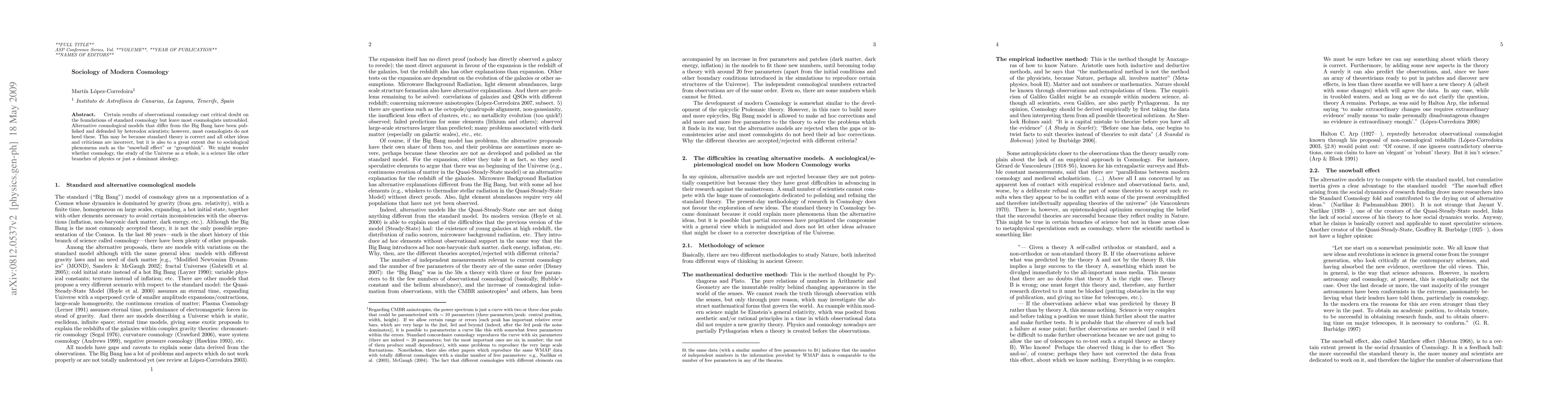 Certain results of observational cosmology cast critical doubt on the foundations of standard cosmology but leave most cosmologists untroubled. Alternative cosmological models that differ from the Big Bang have been published and defended by heterodox scientists; however, most cosmologists do not heed these. This may be because standard theory is correct and all other ideas and criticisms are incorrect, but it is also to a great extent due to sociological phenomena such as the "snowball effect" or "groupthink". We might wonder whether cosmology, the study of the Universe as a whole, is a science like other branches of physics or just a dominant ideology.