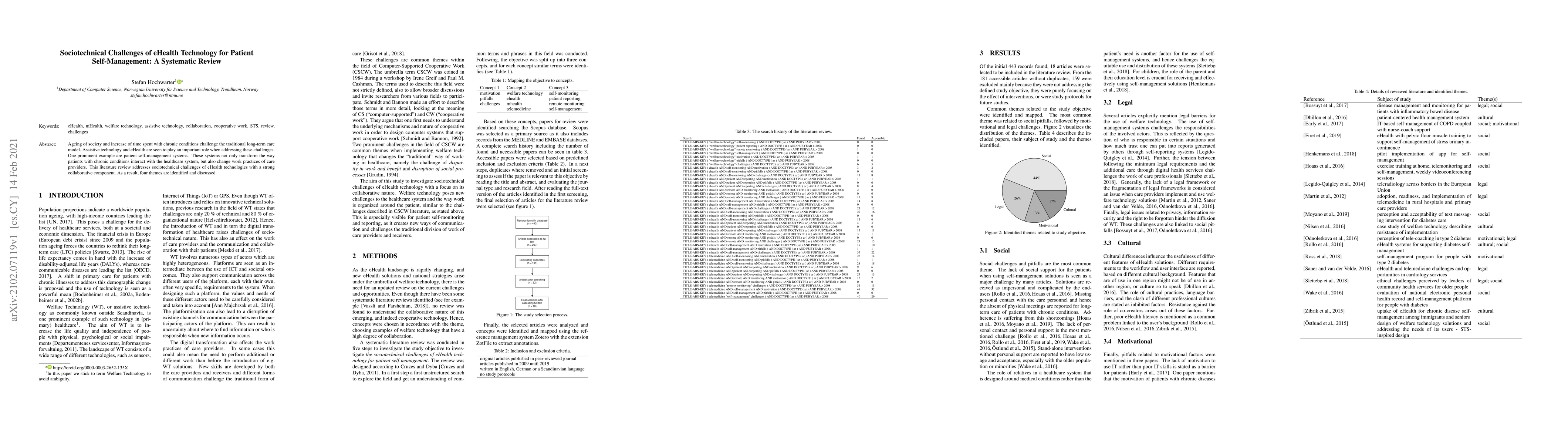 This systematic review explores the sociotechnical challenges of eHealth technology for patient self-management, identifying four key themes. It highlights how these technologies transform both patient-healthcare interactions and care provider practices amidst an ageing population and rising chronic conditions.