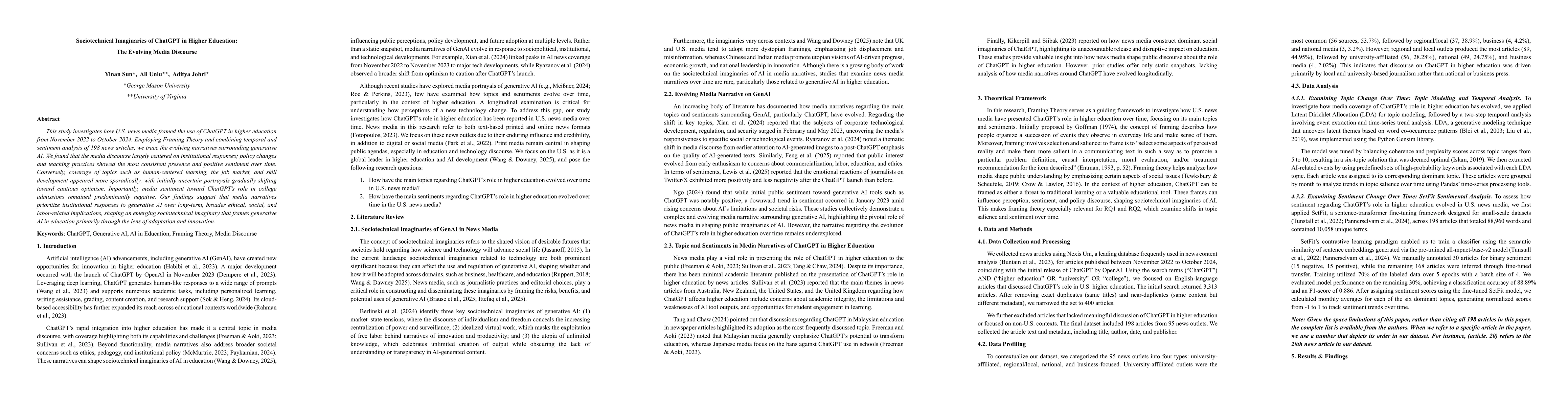 The findings enhance understanding of how media shapes sociotechnical imaginaries of AI in education, providing guidance for equitable and responsible AI integration.