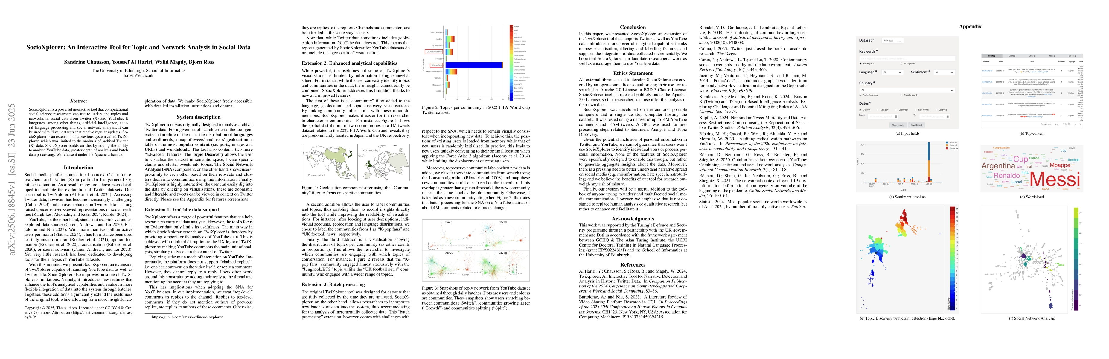 SocioXplorer is a powerful interactive tool that computational social science researchers can use to understand topics and networks in social data from Twitter (X) and YouTube. It integrates, among other things, artificial intelligence, natural language processing and social network analysis. It can be used with ``live" datasets that receive regular updates. SocioXplorer is an extension of a previous system called TwiXplorer, which was limited to the analysis of archival Twitter (X) data. SocioXplorer builds on this by adding the ability to analyse YouTube data, greater depth of analysis and batch data processing. We release it under the Apache 2 licence.