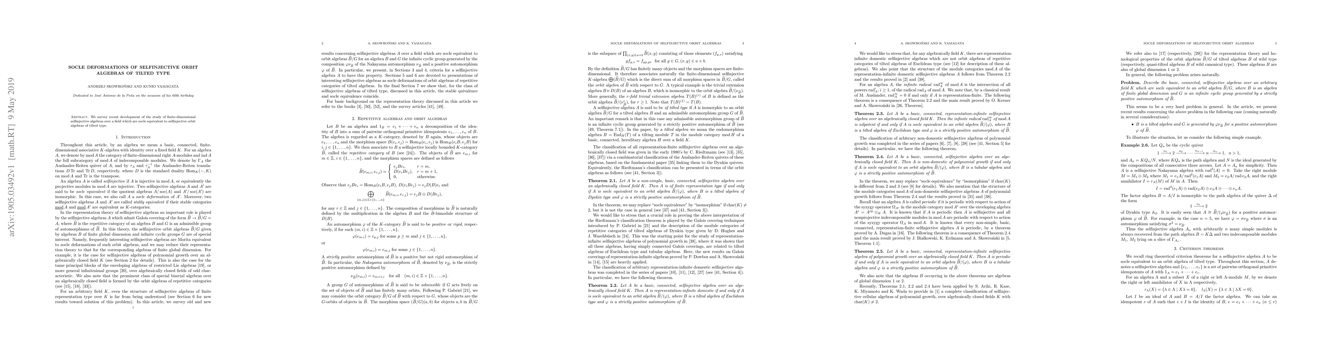 We survey recent development of the study of finite-dimensional selfinjective algebras over a field which are socle equivalent to selfinjective orbit algebras of tilted type.