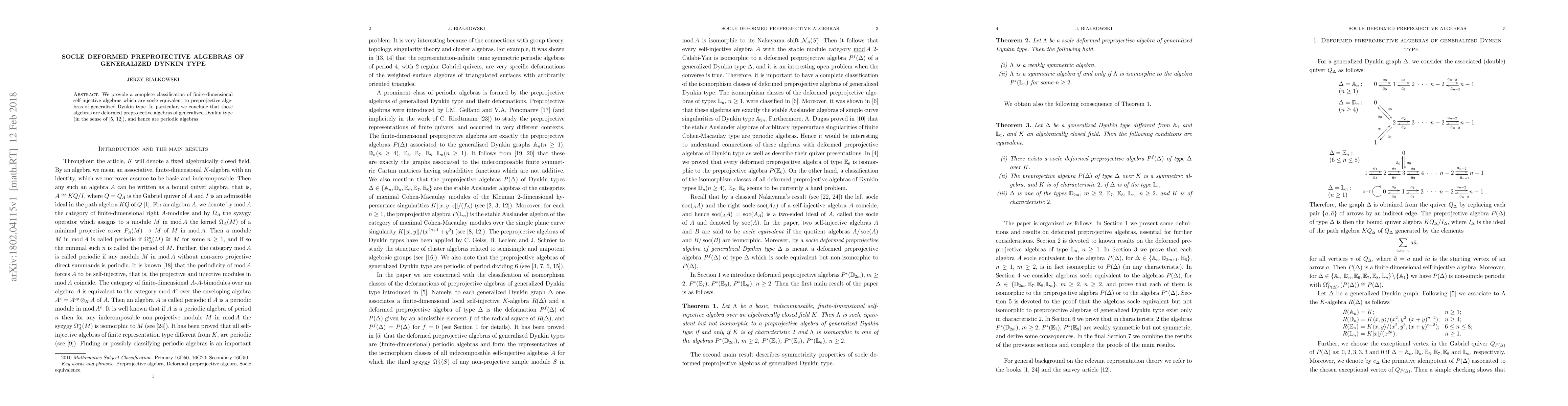 The paper introduces a systematic method for classifying socle deformed preprojective algebras of generalized Dynkin type, establishing isomorphisms between related quiver algebras, and characterizing their symmetry properties in characteristic 2.
