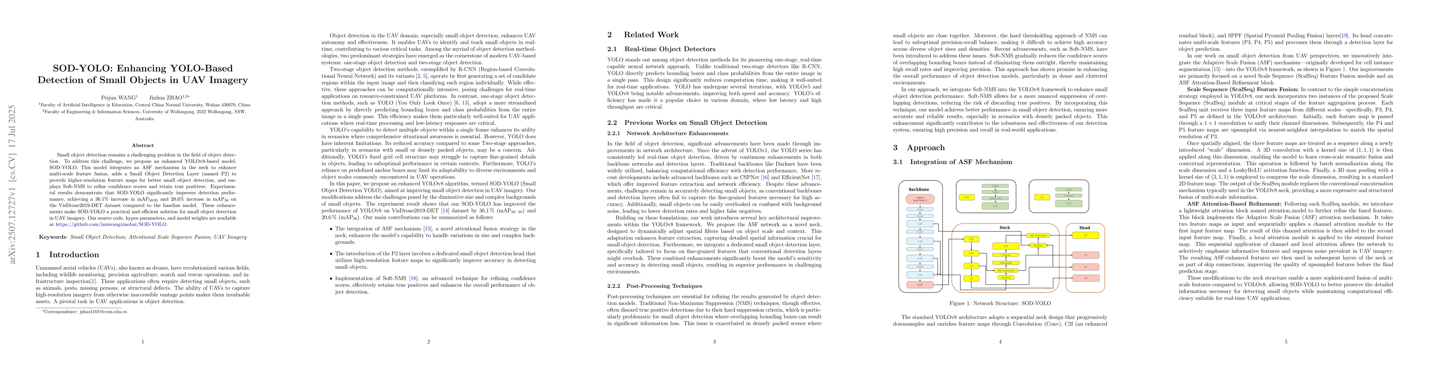 Small object detection remains a challenging problem in the field of object detection. To address this challenge, we propose an enhanced YOLOv8-based model, SOD-YOLO. This model integrates an ASF mechanism in the neck to enhance multi-scale feature fusion, adds a Small Object Detection Layer (named P2) to provide higher-resolution feature maps for better small object detection, and employs Soft-NMS to refine confidence scores and retain true positives. Experimental results demonstrate that SOD-YOLO significantly improves detection performance, achieving a 36.1% increase in mAP$_{50:95}$ and 20.6% increase in mAP$_{50}$ on the VisDrone2019-DET dataset compared to the baseline model. These enhancements make SOD-YOLO a practical and efficient solution for small object detection in UAV imagery. Our source code, hyper-parameters, and model weights are available at https://github.com/iamwangxiaobai/SOD-YOLO.