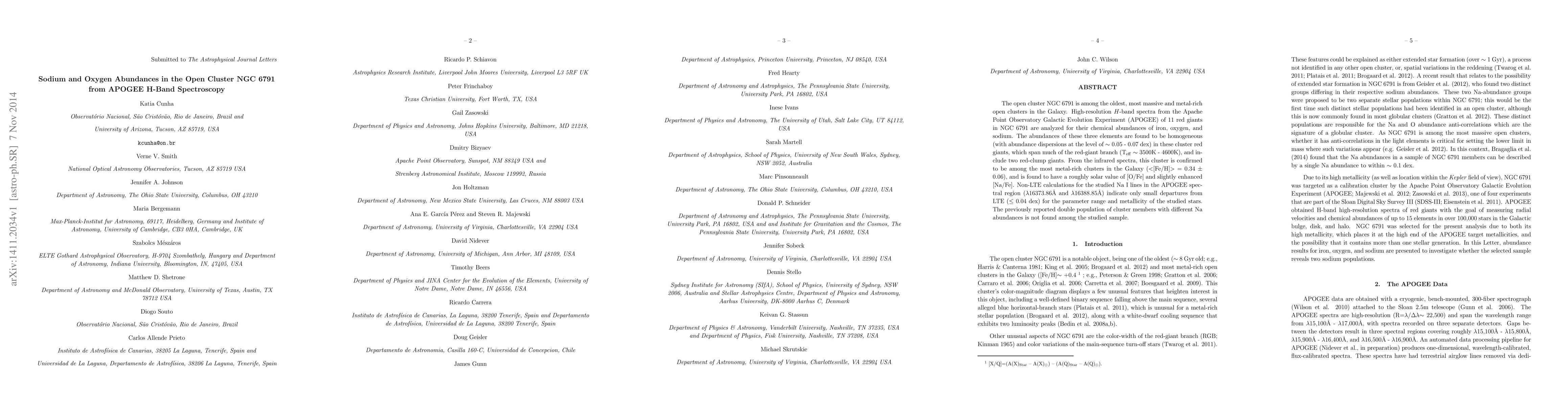 This study analyzes high-resolution $H$-band spectra from APOGEE for 11 red giants in NGC 6791, revealing homogeneous chemical abundances of iron, oxygen, and sodium among the cluster's stars. The cluster is confirmed to be highly metal-rich with a solar [O/Fe] ratio and slightly enhanced [Na/Fe], with no evidence of a double population in sodium abundances.