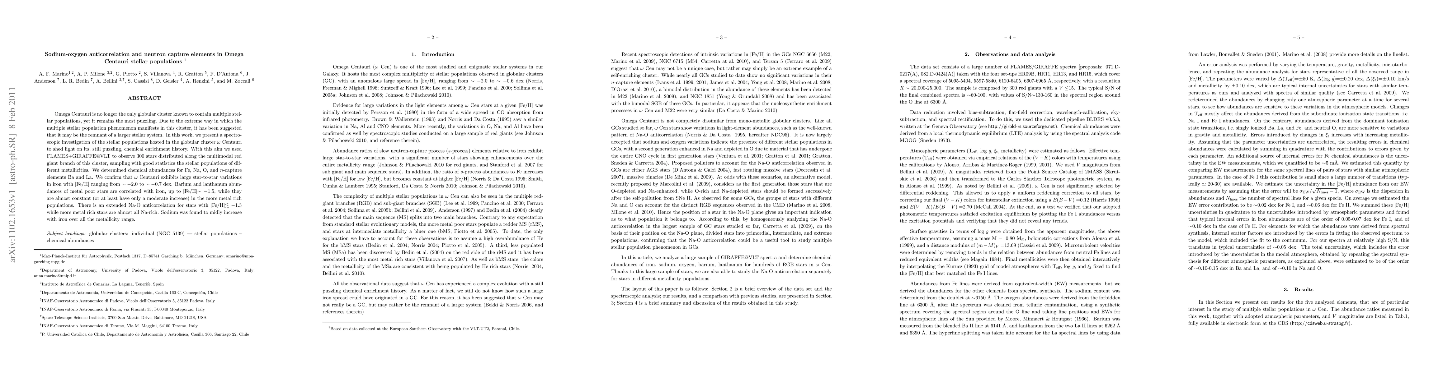 This study investigates the chemical composition of Omega Centauri's stellar populations using FLAMES+GIRAFFE@VLT, revealing significant star-to-star variations in iron and a notable Na-O anticorrelation in metal-poor stars, suggesting complex chemical enrichment history.